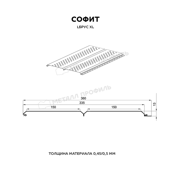 Софит Металл Профиль перфор. Lбрус-XL-14х335 (ПЭ-01-8017-0.45)